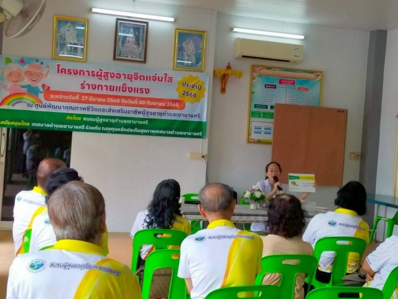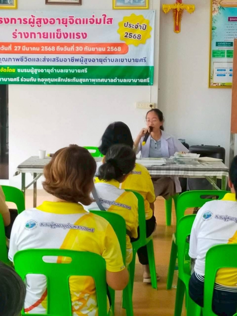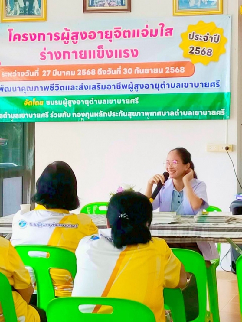 (22สิงหาคม 2568) นายบัญชา โพธิหัง นายกเทศมนตรีตำบลเขาบายศรี มอบหมายให้ นางสาวจินห์จุฐา ชุติฐิตาคุณาสิน หัวหน้าสำนักปลัดเทศบาล เป็นผู้แทนเข้าร่วมโครงการผู้สูงอายุจิตแจ่มใสร่างกายแข็งแรง ณ ศูนย์พัฒนาคุณภาพชีวิตเเละส่งเสริมอาชีพผู้สูงอายุตำบลเขาบายศรี หมู่ที่ 10 ตำบลเขาบายศรี อำเภอท่าใหม่ จังหวัดจันทบุรี