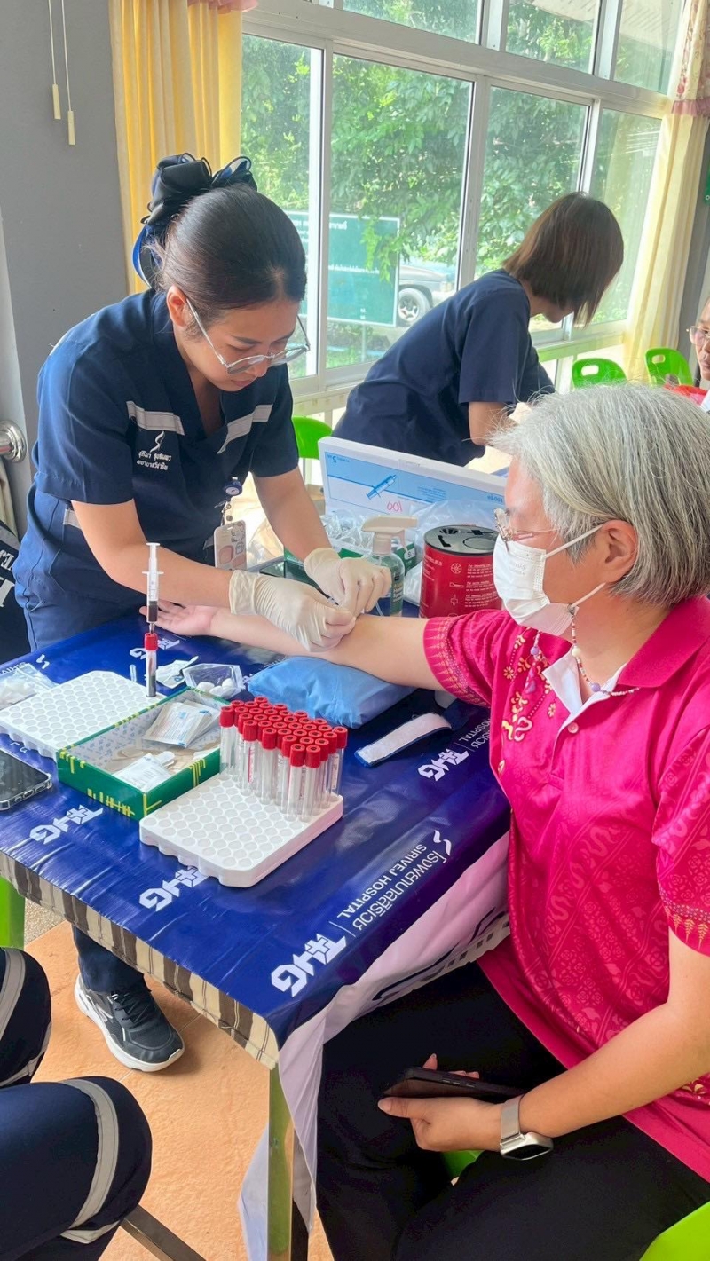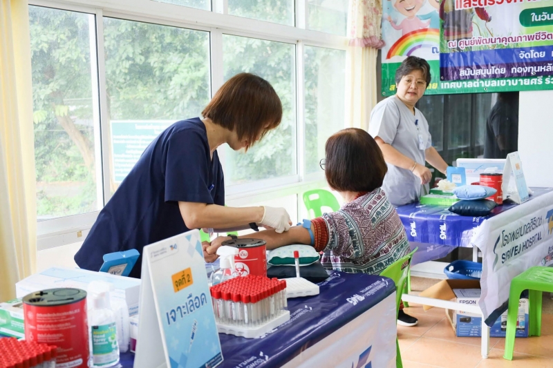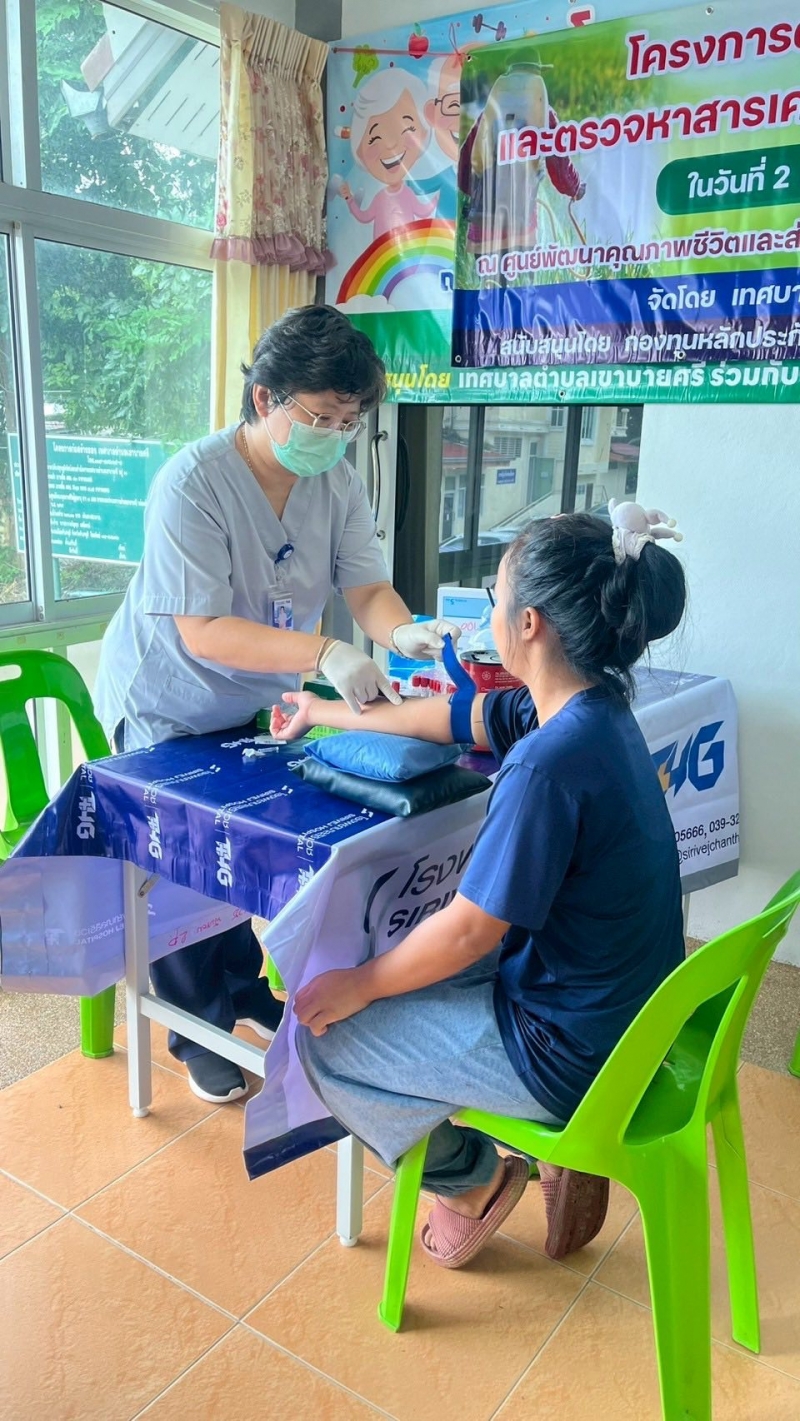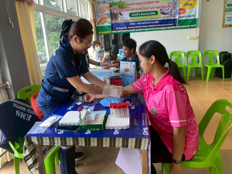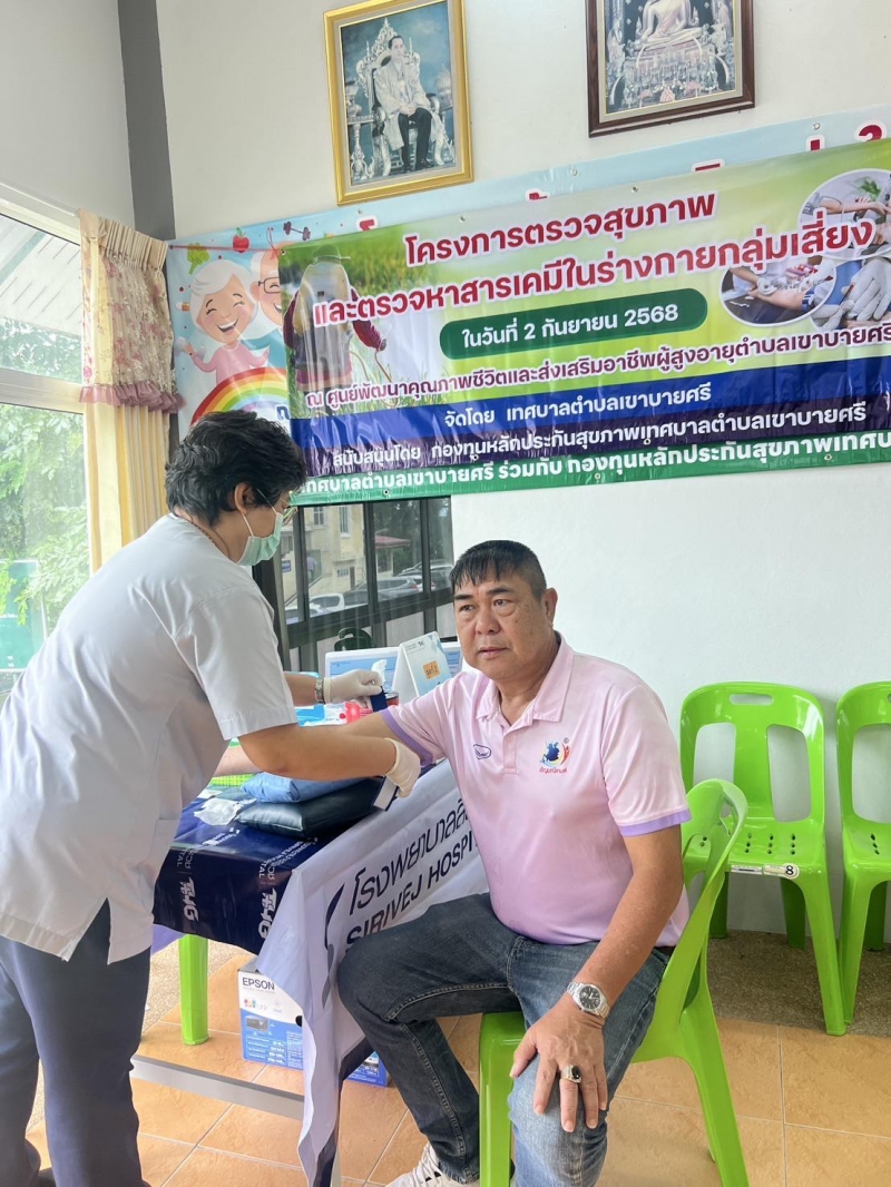 เทศบาลตำบลเขาบายศรีจัดโครงการตรวจสุขภาพและตรวจหาสารเคมีในร่างกายกลุ่มเสี่ยง ณศูนย์พัฒนาคุณภาพชีวิตและส่งเสริมอาชีพผู้สูงอายุตำบลเขาบายศรี