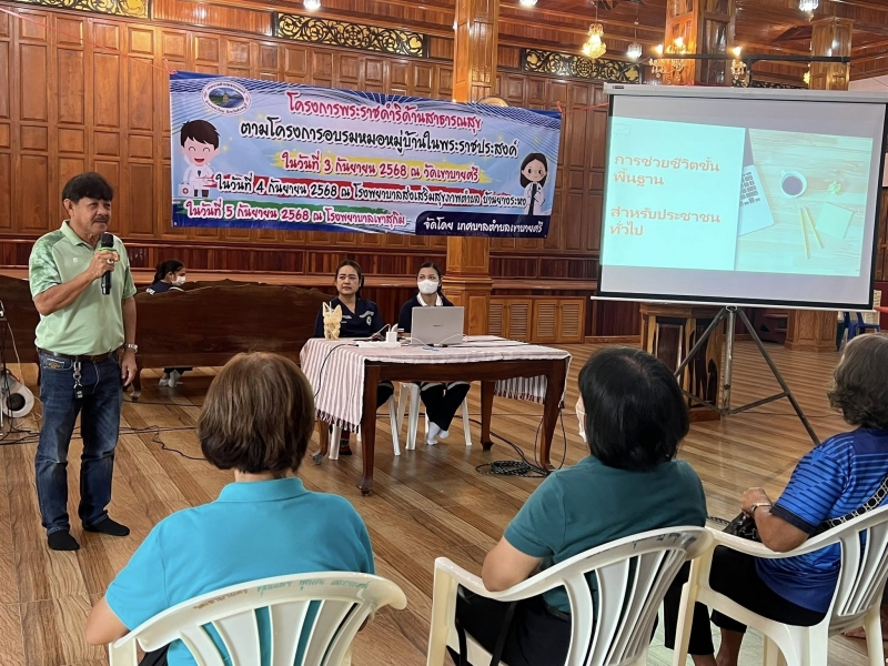 (3 กันยายน 2568) นายบัญชา โพธิหัง นายกเทศมนตรีตำบลเขาบายศรี เป็นประธานเปิดโครงการพระราชดำริด้านสาธารณสุข ตามโครงการอบรมหมอหมู่บ้านในพระราชประสงค์ พร้อมด้วยคณะผู้บริหารท้องถิ่น สมาชิกสภาเทศบาล พนักงานเทศบาลตำบลเขาบายศรี ณ วัดเขาบายศรี อำเภอท่าใหม่ จังหวัดจันทบุรี โดยวัตถุประสงค์ของการจัดโครงการเพื่อให้ผู้เข้าร่วมอบรมมีทักษะในการรักษาพยาบาลเบื้องต้นให้แก่บุคคลในชุมชนได้อย่างถูกต้อง ช่วยลดปัญหาการเข้าถึงสถานพยาบาลในพื้นที่ห่างไกล