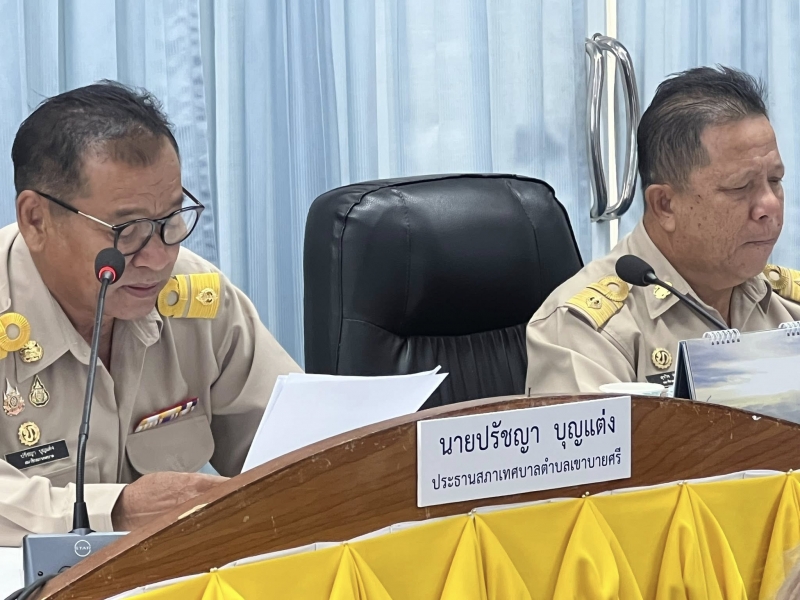 (29 กันยายน 2568) นายปรัชญา บุญแต่ง ประธานสภาเทศบาลตำบลเขาบายศรี ได้ดำเนินการจัดการประชุมสภาเทศบาลตำบลเขาบายศรี สมัยวิสามัญ ครั้งที่ 1 ประจำปี พ.ศ.2568 ในวันจันทร์ที่ 29 กันยายน 2568 เวลา 13.00 น. ณ ห้องประชุมสภาเทศบาลตำบลเขาบายศรี ชั้น 3 เพื่อให้นายกเทศมนตรีตำบลเขาบายศรี เสนอญัตติขอกันเงินงบประมาณในการดำเนินโครงการฯ ตามภารกิจของเทศบาล กรณียังไม่ก่อหนี้ผูกพัน และปรึกษาหารือข้าราชการต่างๆ ต่อสภาเทศบาลตำบลเขาบายศรี ณ ห้องประชุมสภาเทศบาลตำบลเขาบายศรี ชั้น 3 ตำบลเขาบายศรี อำเภอท่าใหม่ จังหวัดจันทบุรี