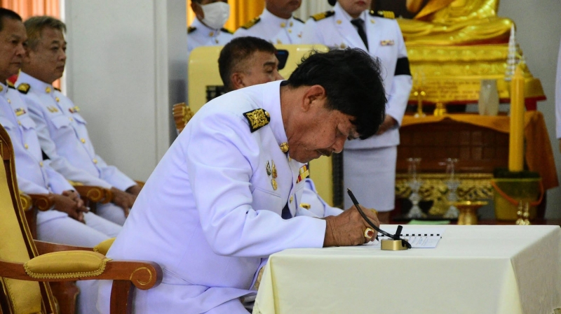 ว่าที่พันตรี ชาติชาย ศรีโพธิ์อ่อน นายอำเภอท่าใหม่ เป็นประธานในพิธีถวายน้ำสรงพระบรมศพสมเด็จพระนางเจ้า