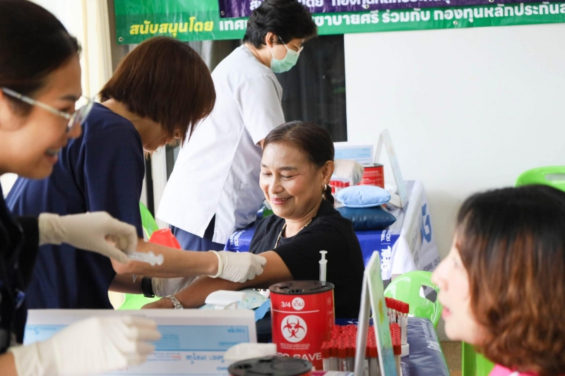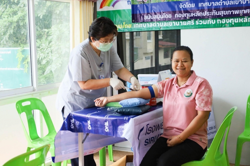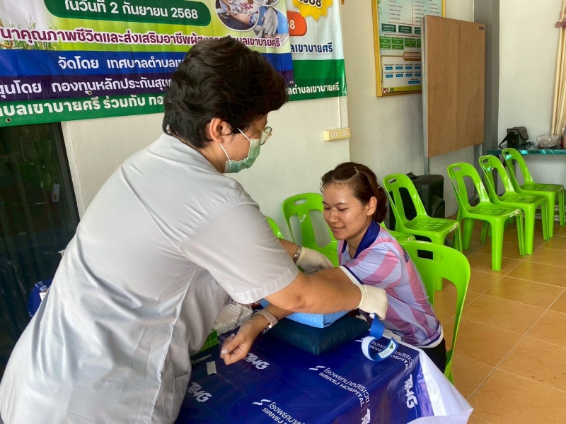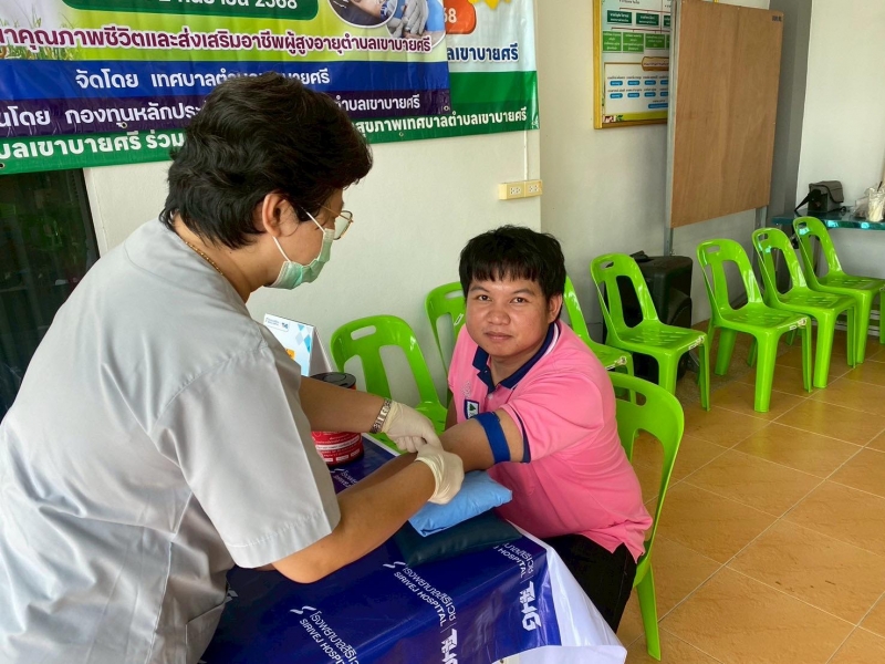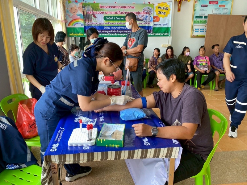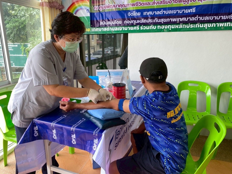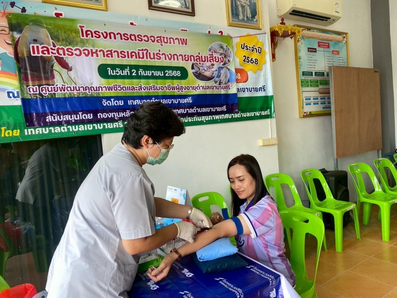 เทศบาลตำบลเขาบายศรีจัดโครงการตรวจสุขภาพและตรวจหาสารเคมีในร่างกายกลุ่มเสี่ยง ณศูนย์พัฒนาคุณภาพชีวิตและส่งเสริมอาชีพผู้สูงอายุตำบลเขาบายศรี