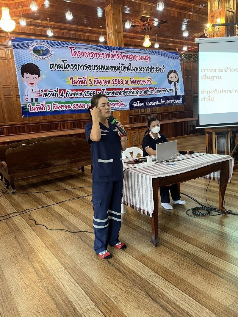 (3 กันยายน 2568) นายบัญชา โพธิหัง นายกเทศมนตรีตำบลเขาบายศรี เป็นประธานเปิดโครงการพระราชดำริด้านสาธารณสุข ตามโครงการอบรมหมอหมู่บ้านในพระราชประสงค์ พร้อมด้วยคณะผู้บริหารท้องถิ่น สมาชิกสภาเทศบาล พนักงานเทศบาลตำบลเขาบายศรี ณ วัดเขาบายศรี อำเภอท่าใหม่ จังหวัดจันทบุรี โดยวัตถุประสงค์ของการจัดโครงการเพื่อให้ผู้เข้าร่วมอบรมมีทักษะในการรักษาพยาบาลเบื้องต้นให้แก่บุคคลในชุมชนได้อย่างถูกต้อง ช่วยลดปัญหาการเข้าถึงสถานพยาบาลในพื้นที่ห่างไกล