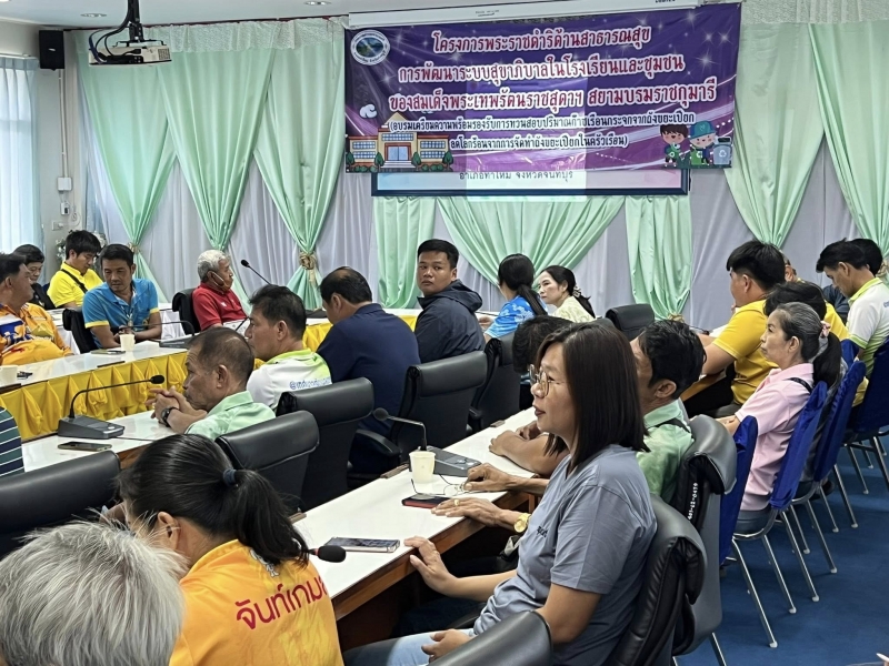 วันนี้ 10 กันยายน 2568 นายบัญชา โพธิหัง นายกเทศมนตรีตำบลเขาบายศรี เป็นประธานเปิดโครงการพระราชดำริด้านสาธารณสุข การพัฒนาระบบสุขาภิบาลในโรงเรียนและชุมชน ของสมเด็จพระเทพรัตนราชสุดาฯ สยามบรมราชกุมารี (อบรมเตรียมความพร้อมรองรับการทวนสอบปริมาณก๊าซเรือนกระจกจากถังขยะเปียก ลดโลกร้อนจากการจัดถังขยะเปียกในครัวเรือน) พร้อมด้วยคณะผู้บริหารท้องถิ่น สมาชิกสภาเทศบาล พนักงานเทศบาลตำบลเขาบายศรี ณ ห้องประชุมเทศบาลตำบลเขาบายศรี อำเภอท่าใหม่ จังหวัดจันทบุรี โดยวัตถุประสงค์ของการจัดโครงการเพื่อสร้างจิตสำนึกในการดูแลสุขภาพ ป้องกันปัญหาจากโรคภัยต่างๆ ที่เกิดจากขยะ และสร้างสิ่งแวดล้อมที่เป็นมิตรกับประชาชนในพื้นที่